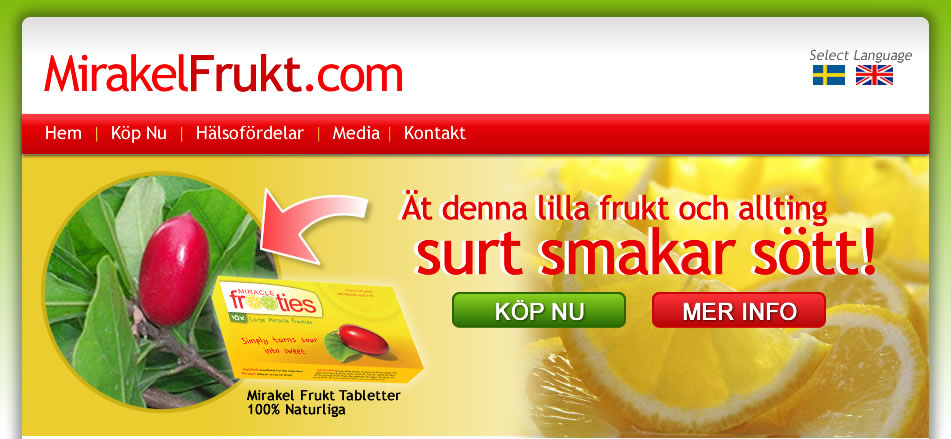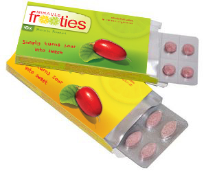 Pulvret är sedan sammanpressat till Frooties för enklare användning. Miracle Frooties placeras sedan i förseglade blisterförpackningar på 10 Frooties (tabletter) och sedan vidare in i en förseglad plast / metall förpackning. Miracle Frooties innehåller inga konstgjorda tillsatser (t.ex. färgämnen, syror eller konserveringsmedel).
